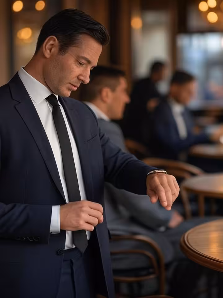 Cinq minutes d'attente peuvent sembler courtes, mais psychologiquement, il se passe beaucoup de choses. Ton rendez-vous est assis, vérifie son téléphone portable, regarde sa montre. L'insécurité s'installeEst-ce qu'il ou elle vient encore ? Le rendez-vous est-il assez important ? Ces pensées rongent la première impression avant même que vous ayez parlé.